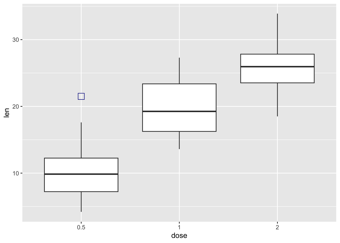 Let’s try out different shapes. See how the different values for the outlier.shape argument affect the plot. What happens when you run the following commands?