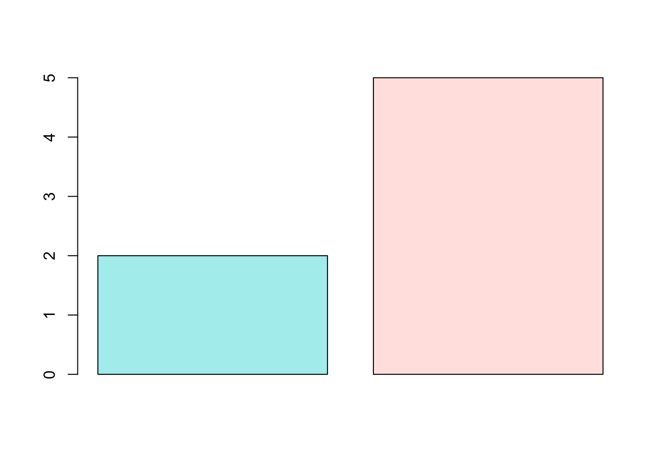 barplot(c(2,5), col=c("paleturquoise", "mistyrose"))