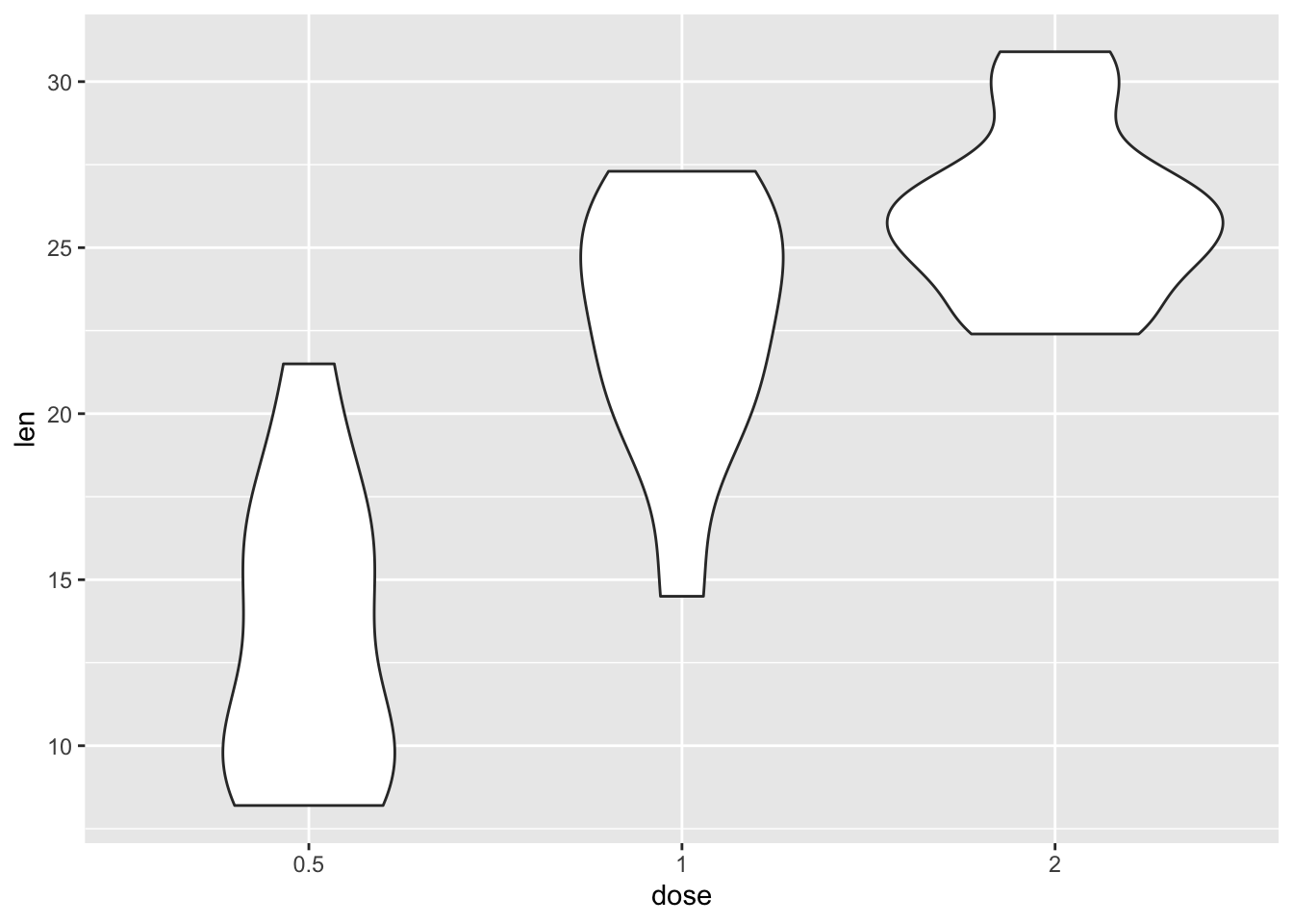 We can also use special types of boxplots that combine a density plot with the boxplot. These are called violin plots, becasue they look like violins, if you squint a lot.